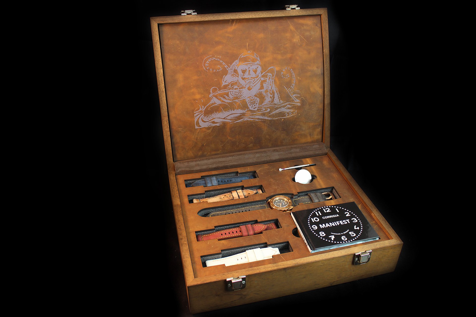 The series has now grown to 3 series, each unique in finish and dial colors. When you buy one of them, it comes in a beautiful box that is actually packed with goodies, like 5 handmade Corrigia vintage straps, tools to change straps and the buckle. Each watch comes with a 5 year international warranty card with a handwritten date, handwritten signature by Cengio Corrigia and limitation certificate.