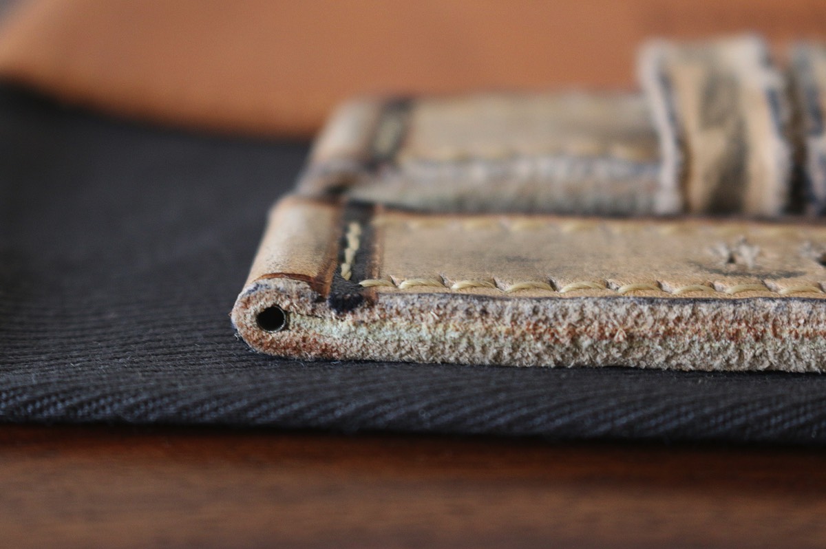 Presently he creates quite a variety of handmade vintage straps for various models. You can choose between "uniform thickness" or the "true vintage style", this is a trifold technique that makes the strap stronger an a bit thicker at the lug side. The straps are created with an old antique awl, antique leather knife, antique plane and antique tools. The vintage and worn look is created by many hours of grinding and polishing. The straps are finished with a saltwater and a natural leather balsam treatment. When you order a strap you can choose out of a variety of buckle to make your strap even more personalized or order it without a buckle in case you prefer your own buckles.