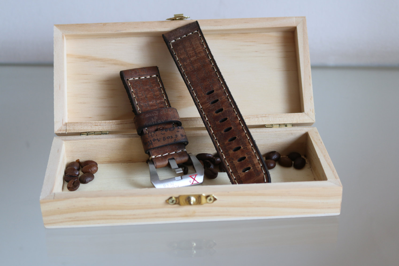 The strap came in a Corrigia wooden box with the model name of the strap branded on the box including the Voynich script, a cool detail!
