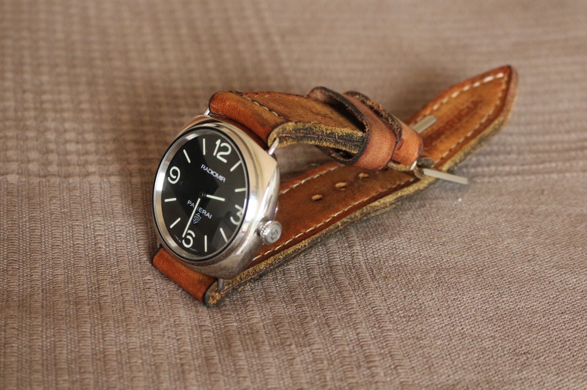 This Corrigia L24 strap is a super cool strap that makes my PAM00753 from an elegant watch to a combat Panerai from the 1940's. The leather and finish is fantastic and over time has not changed a lot in color, it is just a bit less matt finish as in the beginning, the strap ages very nice.